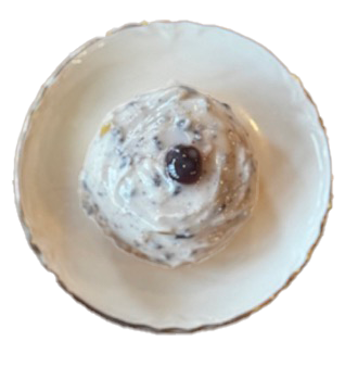 Minni di Virgini A Sicilian traditional pastry - vanilla sponge cake, whipped ricotta with chocolate and candied citrus, Luxardo cherry • 15